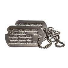 (IN HOUSE SERVICE) – GENUINE DOG TAG SETS PUNCHED ON AN ORIGINAL WW2 MACHINE WHILE U WAIT – £14.50 a pair with chains